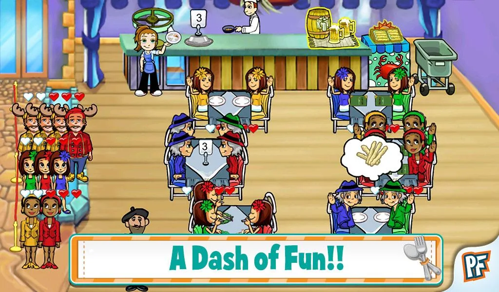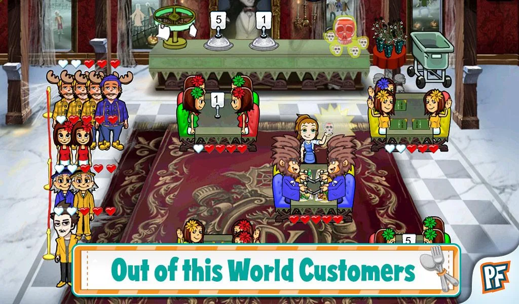 Membangun kerajaan Anda restoran di chart-topping ini permainan kecepatan dan cerdas. Bantuan Flo, seorang pengusaha gagah, tumbuh nya diner tanda tangan dari sendok berminyak untuk bersama bintang lima. Menyenangkan pelanggan bersemangat dengan tempat duduk, melayani, dan membersihkan meja dengan cepat untuk mendapatkan tips besar. Atasi tamu sabar sebelum mereka marah dan melompat keluar pada tagihan. Tekan dan geser jalan ke puncak tangga restoran di hit permainan ini di seluruh dunia!